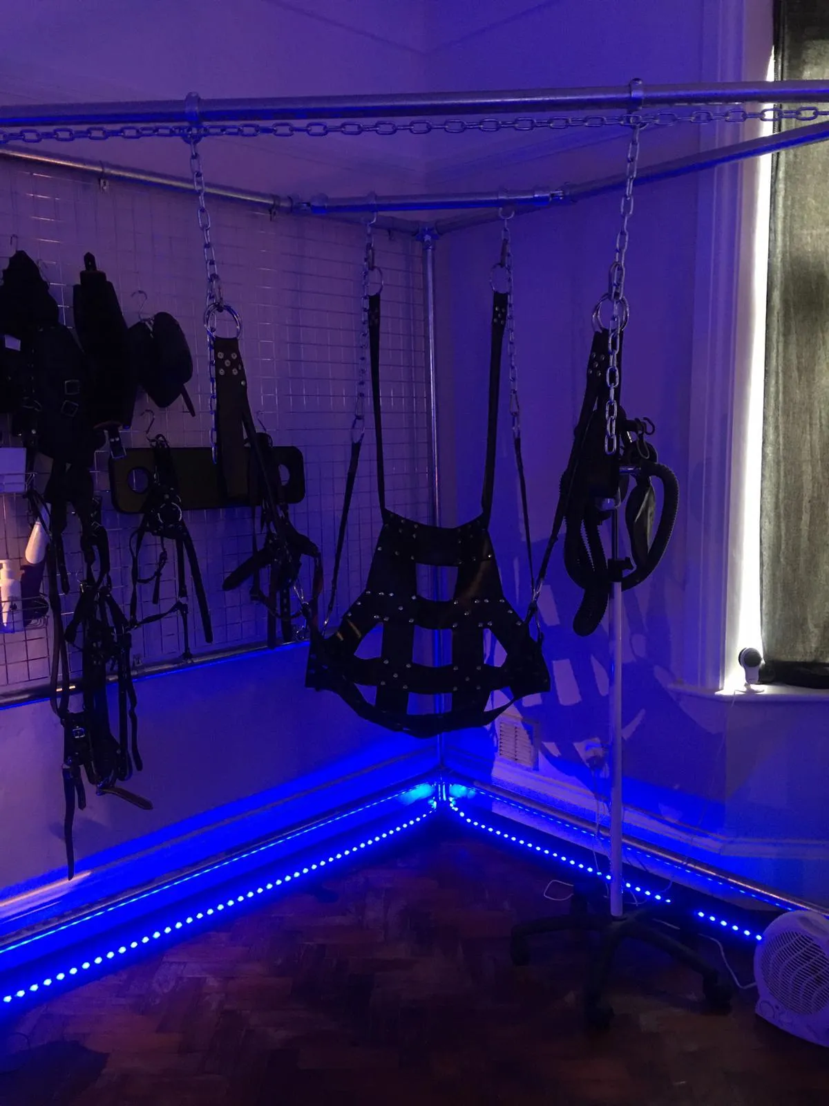 Leather swing for bondage and strapon play